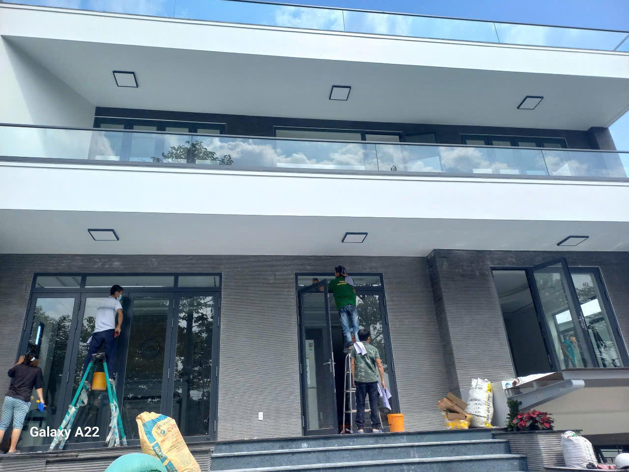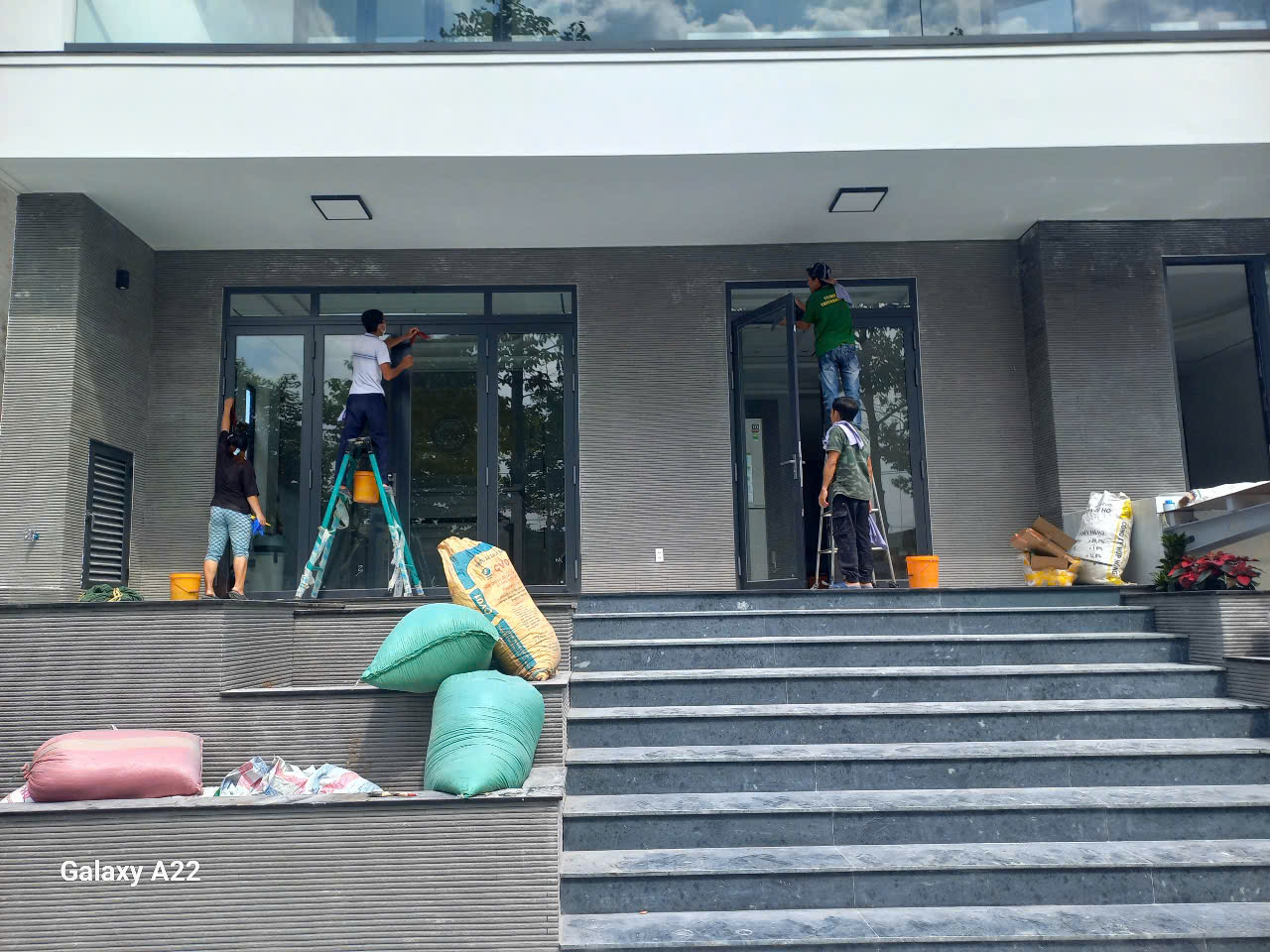 - Vệ sinh thô: Loại bỏ các mảnh vụn, bụi lớn, phân chim bám trên bề mặt kính bằng các dụng cụ chuyên dụng.